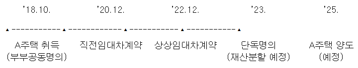 2025년 A 주택 양도 예정본래대로 부부공동명의로 가지고 있다가 상생임대차 특례 적용 받기위해 25년 부터 양도하면 2년 거주 요건 충족하게 되어 비과세 대상이 됩니다. 그런데 상생임대차계약 후 1년 있다가 이혼으로 단독명의로 변경된 경우인데