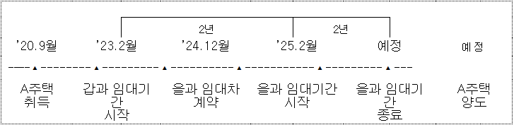 2025.2월 임차인 갑과 임대기간 종료, 임차인 을과 임대기간 시작.