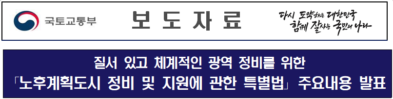 오늘 1기 신도시 특별법 즉, 노후계획도시 정비 및 지원에 관한 특별법 주요 내용을 발표했어요.
