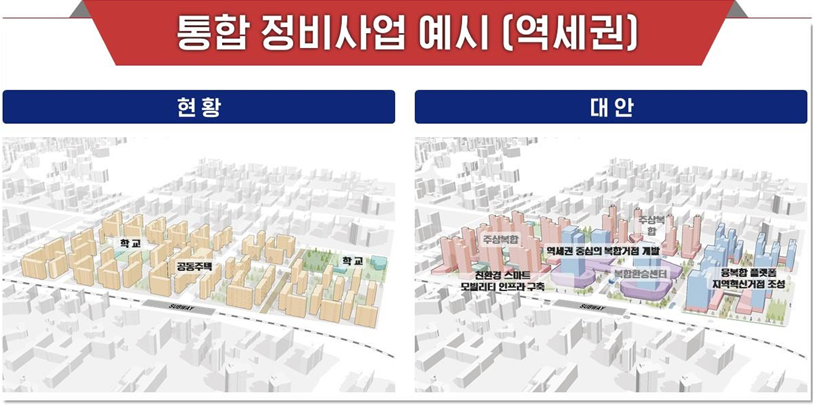 특별정비구역은 역세권 복합, 고밀개발, 대규모 블록 단위 통합정비, 광역교통시설 등 기반시설 확충, 이주단지 조성 등 도시 기능 강화를 위한 다양한 사업이 추진되는 구역입니다.