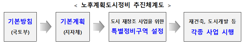 노후계획도시정비의 목표와 기본방향, 기본전략, 기반시설 확보와 이주택책 수립, 선도지구 지정의 원칙, 도시 재창조 사업 유형 등을 제시.