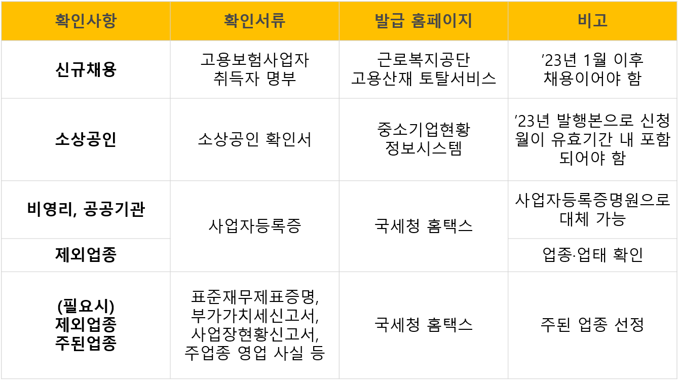 -신청 근로자 고용보험 상실 후 30일 이내에 재최득한 경우(신규채용 불인정)*지원제외 업종_소상공인 정책자금 융자제외 대상업종(중소벤처기업부)