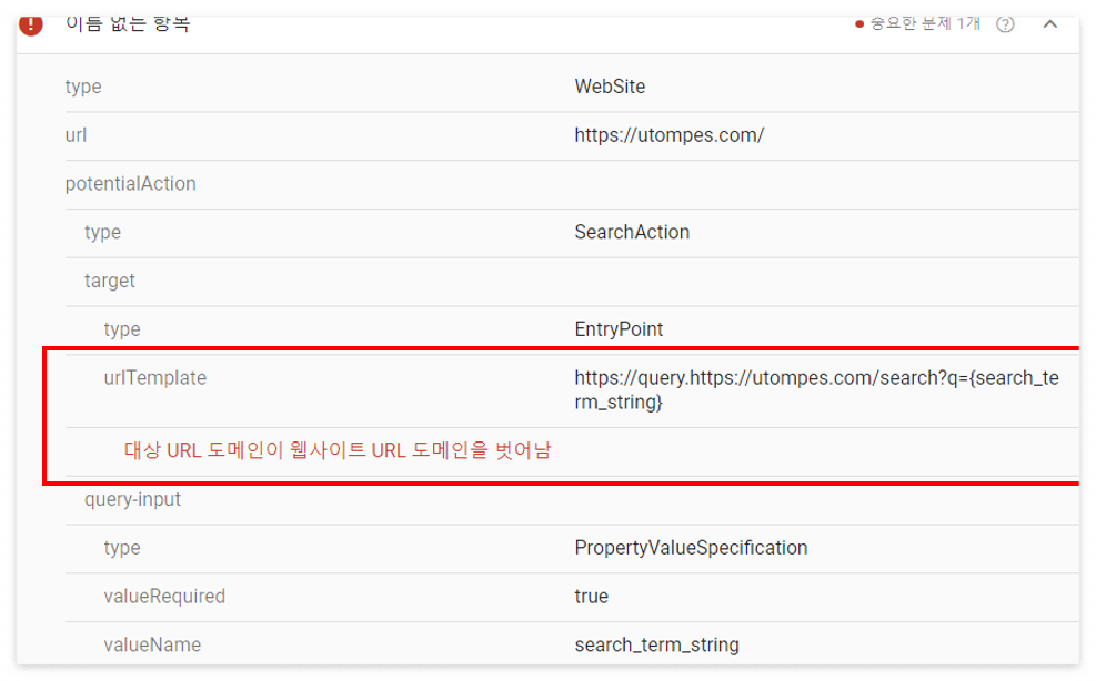 'query-input' 입력란이 누락되었습니다.(경로:'potentialAction') 문제 해결방법은 아래 포스팅 참고하세요.