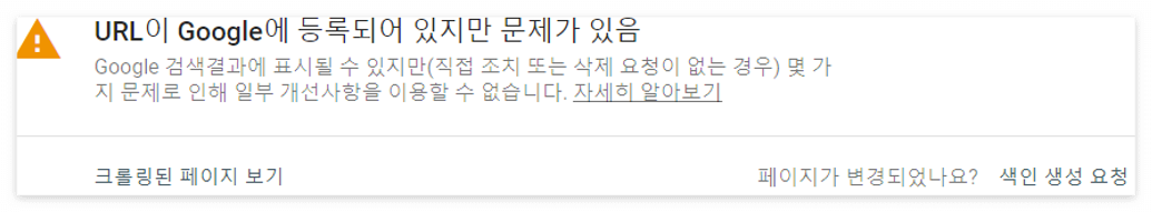구글서치콘솔에서 문제가되는 포스팅 url검사를 해보니 아래와 같이 나옵니다.