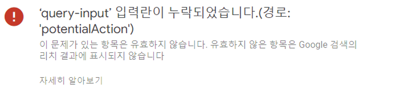 'query-input' 입력란이 누락되었습니다.(경로:'potentialAction') 문제 해결방법은 아래 포스팅 참고하세요.
