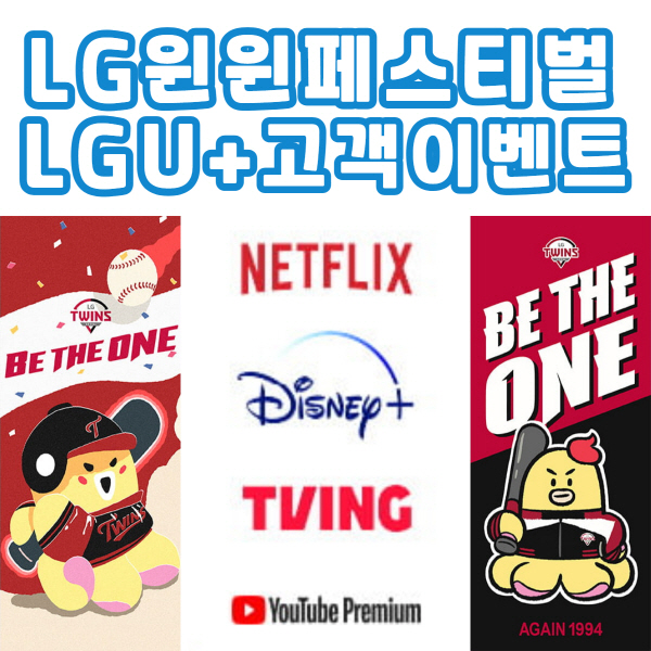 엘지유플러스 디즈니플러스 넷플릭스 티빙 1년 무료 보기[엘지트윈스 우승 할인 행사 LG윈윈페스티벌]일상 2023. 11. 17. 18:30반응형