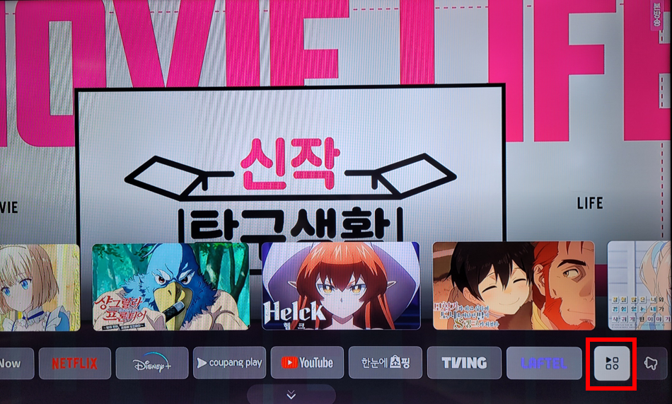 2. 티비 화면에 보면 오른쪽 아래 부분을(붉은 네모) 선택