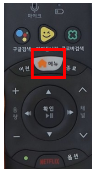 1. 리모컨 중간 부분에 있는 메뉴(또는 홈) 버튼을 누른다.
