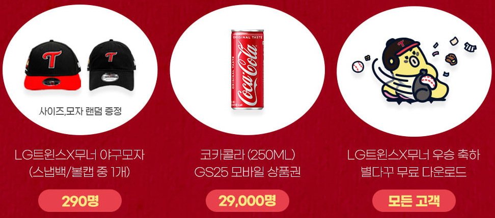 (코카콜라 250ML)29,000명 LG트윈스X무너 우승축하