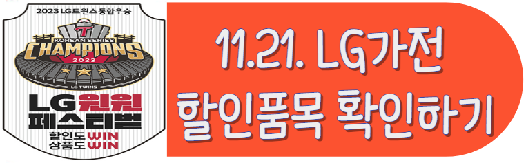 엘지트윈스 우승 할인 LG윈윈 페스티벌 행사, TV,냉장고 등 가전제품 최대 29% 세일일상 2023. 11. 17. 14:31반응형