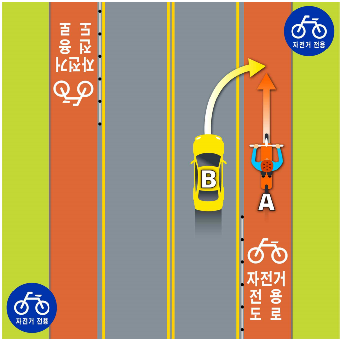 아래 케이스에서 자전거, 전동킥보드 등 A, 자동차가 B 입니다.