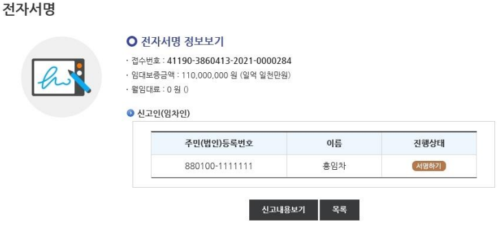 서명까지 완료하면 신고 접수가 완료됩니다.