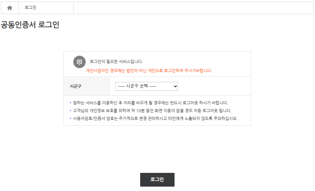 주민번호, 이름을 입력하면 공동인증서 선택하는 팝업창이 뜹니다.