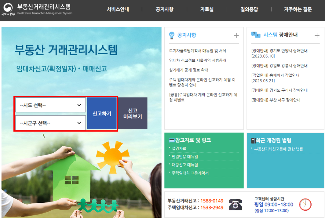 인터넷으로는 부동산거래관리시스템을 이용해서 주택 전월세거래신고를 할 수 있습니다. 이번에는 부동산거래관리시스템을 이용해서 신고하는 방법을 알아보겠습니다.