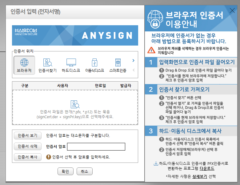 주민번호, 이름을 입력하면 공동인증서 선택하는 팝업창이 뜹니다.