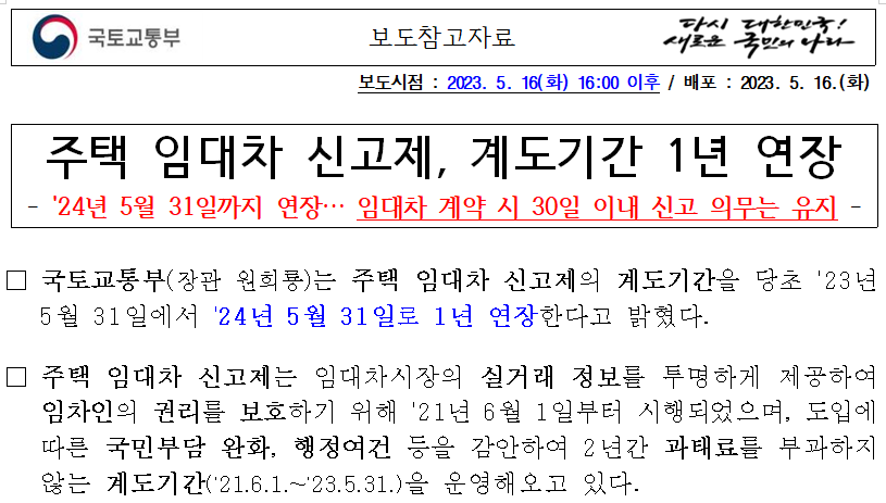 지난 2021년 6월 부터 임대차 3법 중 하나인 전월세 신고제가 시행되어왔습니다. 법 시행 초기에 제도의 안정적인 정착을 위해 1년간의 유예기간을 두어서 2022년 6월 부터 전면 적용하기로 되었는