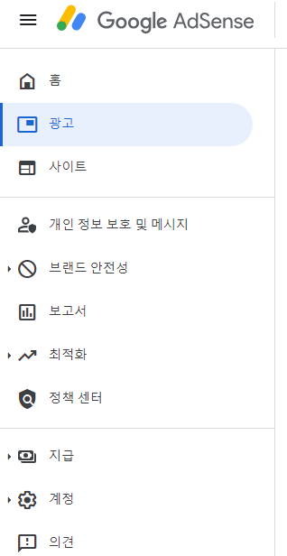 반응형애드센스 홈페이지에 접속해서 왼쪽 광고란을 클릭하니,