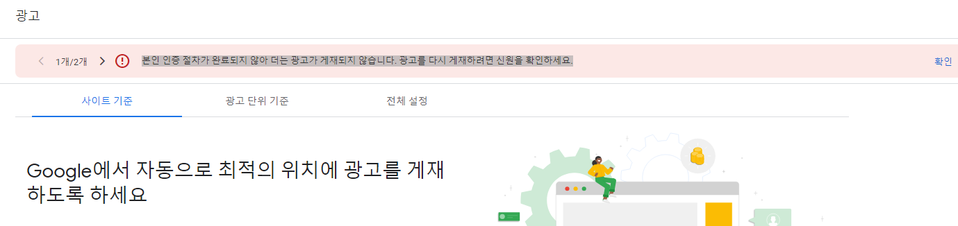 인증 완료 몇시간 후에 확인해보니 애드센스 광고가 다시 노출되었습니다.