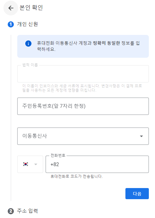핸드폰등 정보 입력해서 인증을 했습니다.