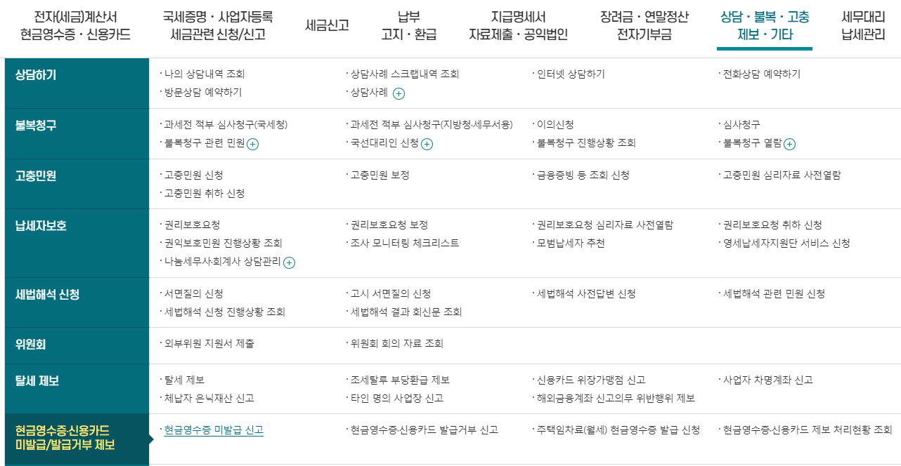 홈택스->상담.불복.고충.제보.기타 -> 현금영수증,신용카드 미발급/발급거부제보 -> 현금영수증 미발급신고