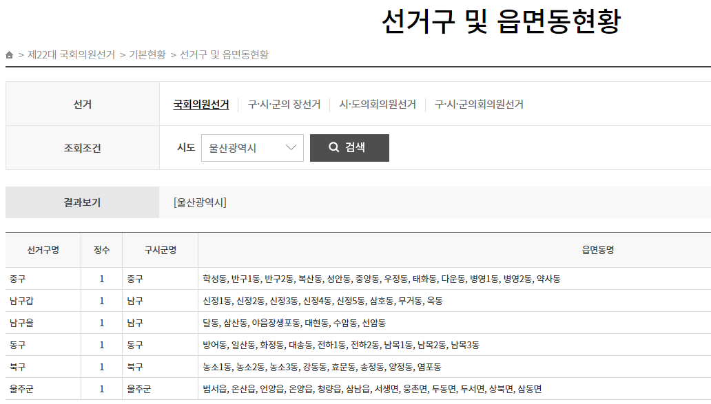 울산광역시를 조회해보니 아래와 같이 나옵니다.
